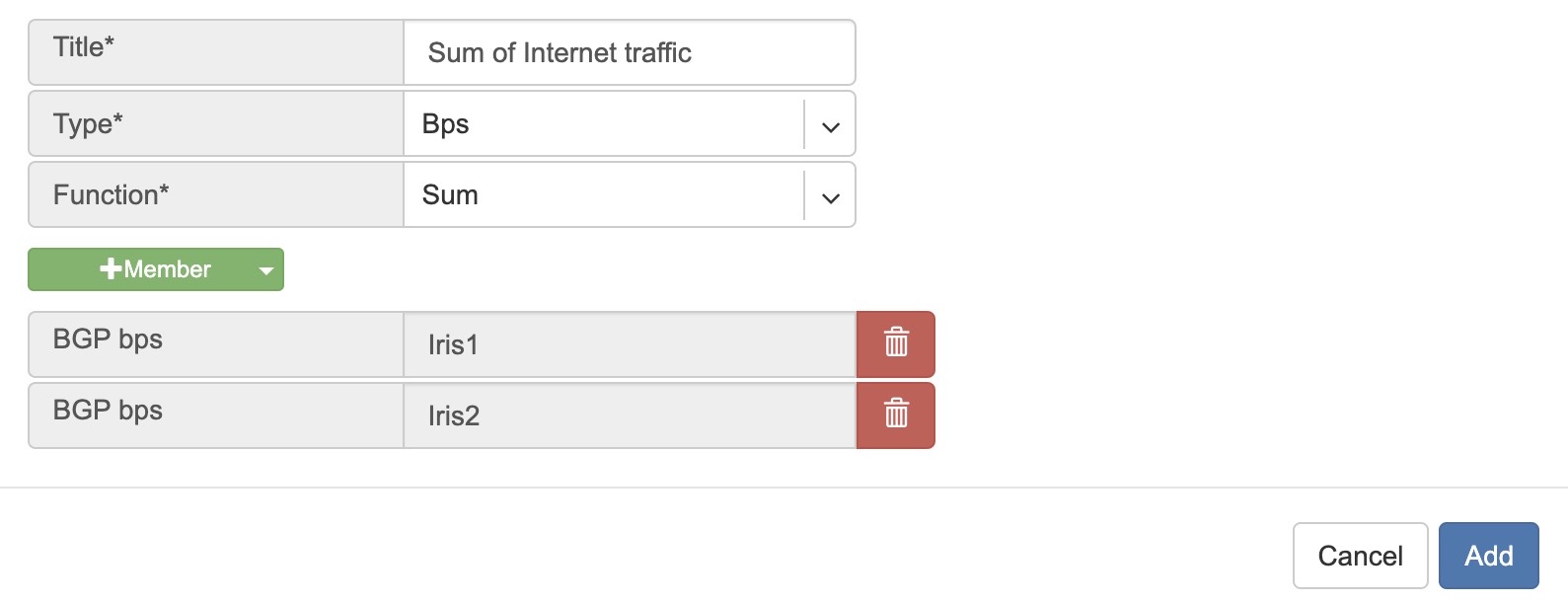 Example: Sum of traffic on two ISP(Iris1 + Iris2) links.