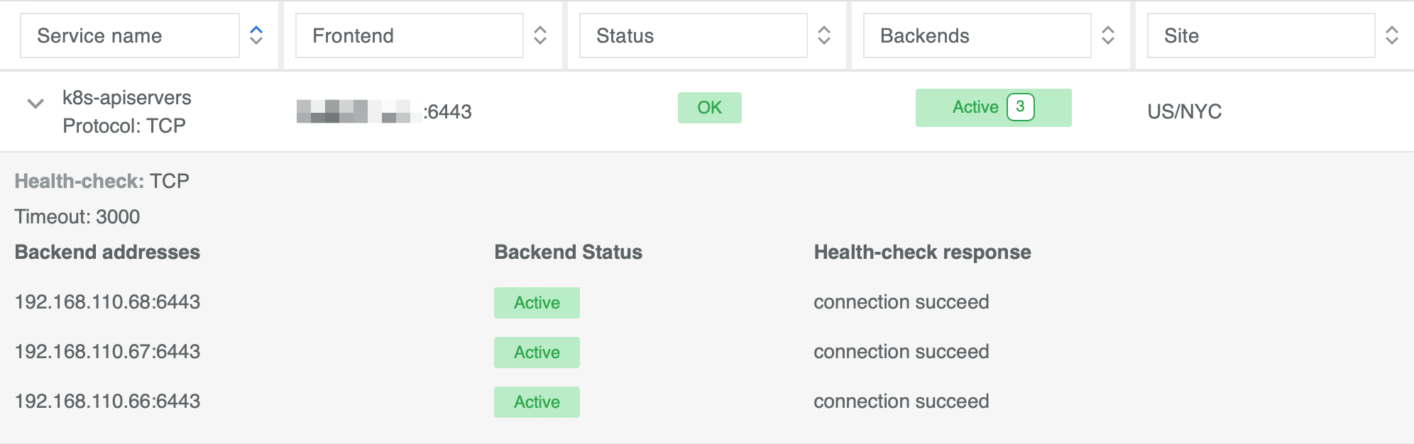 Instead, let’s create a new load balancer using the CRD method. This method allows us to create L4 load balancers for services outside of what is being created natively with the Kubernetes service schema. Our new L4LB’s backends will be “srv04-nyc” & “srv05-nyc” on TCP port 80. These servers are already running the Nginx web server, with the hostname present in the index.html file.