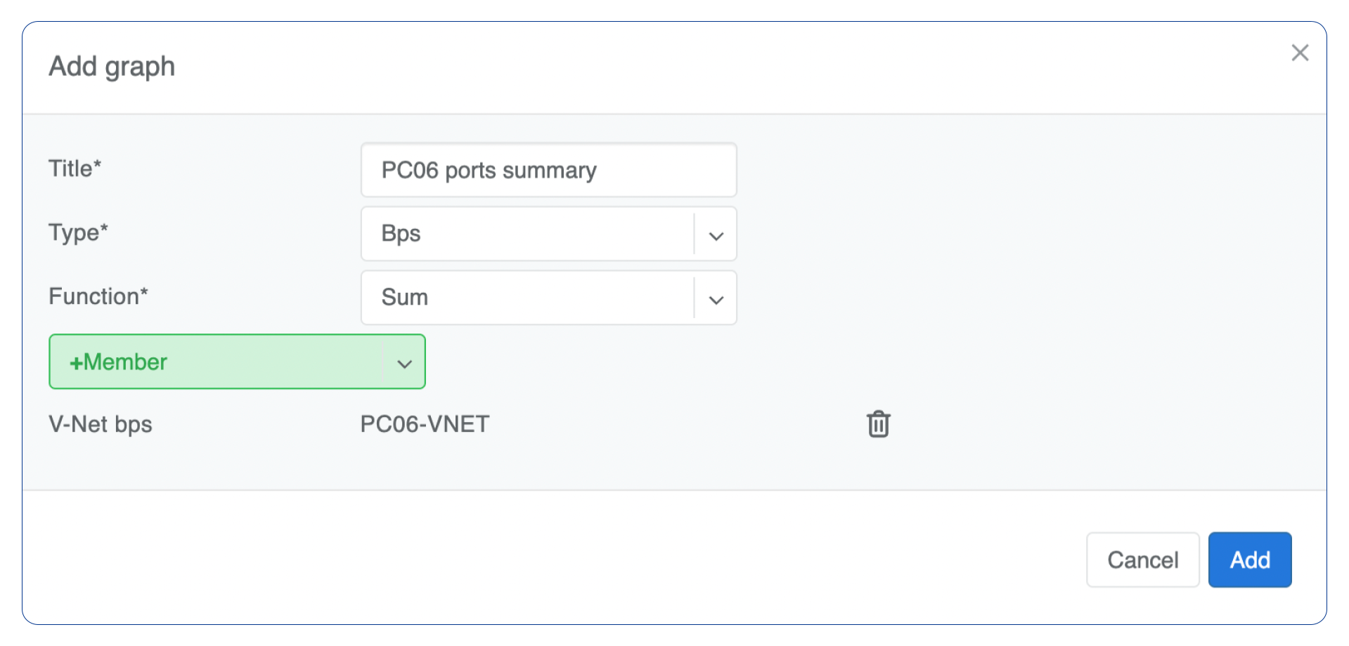 +Member - Add data sources by service (E-BGP, V-NET, etc..) or by Switch Port.